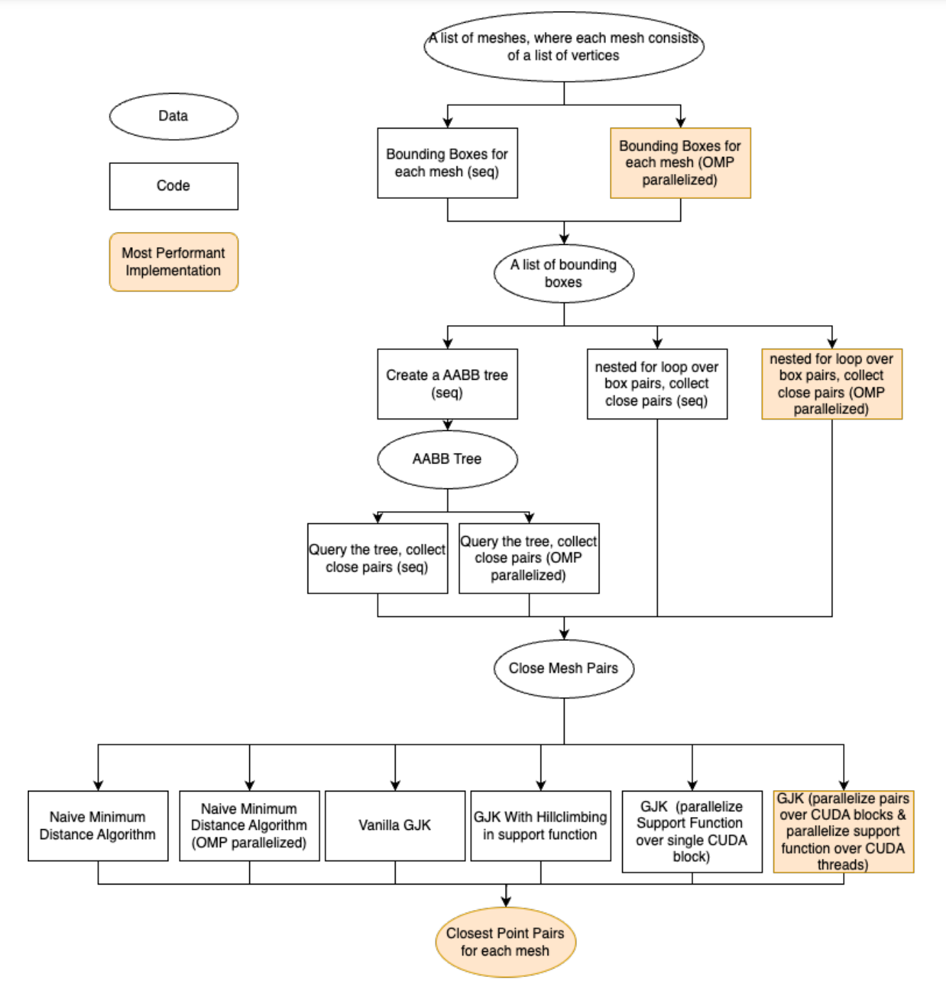 We present a parallel approach to measure the closest distance between 3D convex shapes, an important task in computer graphics and robotics. It uses two specialized computing methods, CUDA and OpenMP, to make this process faster and more efficient.